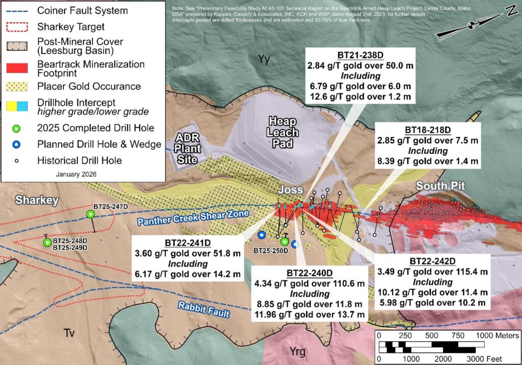 The 2025 drilling program at Mercur finished in December with 115 RC and core holes completed. 107 holes have been released to-date. Data collected will support the Company’s planned Prefeasibility Study targeting release in Q1 2027, a major milestone on the path to restarting gold production at Mercur. Figure 1 describes drill hole locations at Main Mercur.