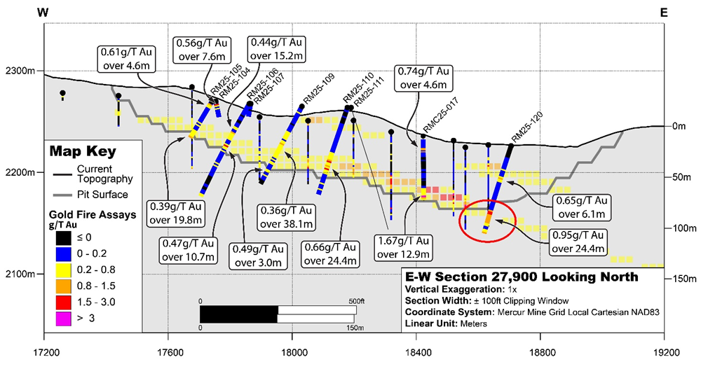 - RMC25-120 intercept shows resource expansion potential down-dip from the 2025 Mercur Preliminary Economic Assessment (“PEA”) pit shell1.
